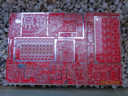 Above:- This is the version C2 or C2a type panel of PCB's. The left 2/3rds is the main Combo board. To the right is the 20W PA, LPF and some smaller pcb's like beeper which are easily removed with sidecutters. Previous versions are similar. The panel is about 410mm wide and 260mm high. The 140W PA pcb is not shown here.