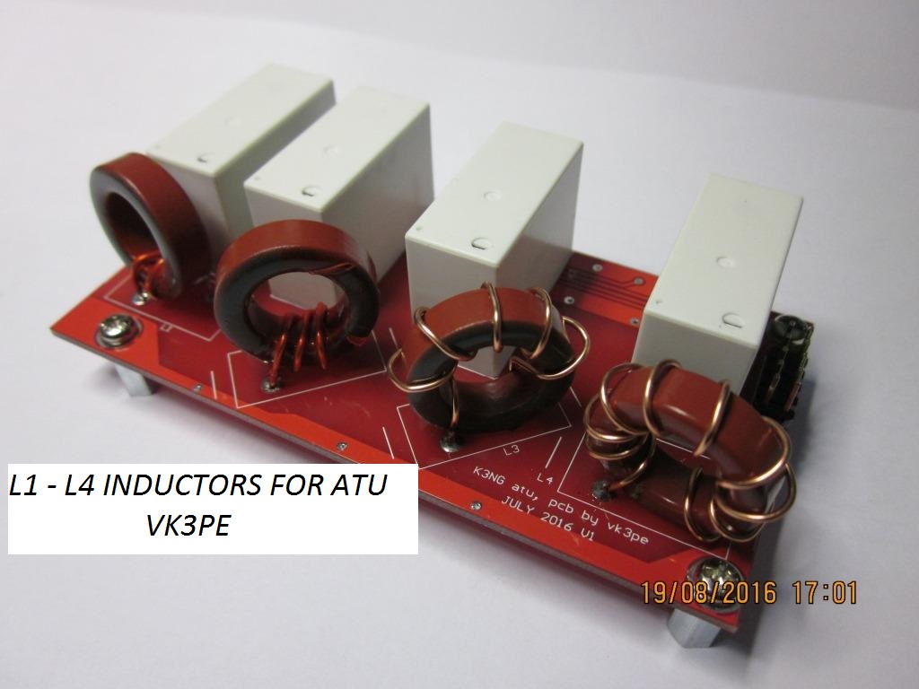 I (VK3PE) have long wanted to build such an ATU but being limited in my Arduino programming knowledge decided I would tackle this project as a good starting point. I wasn't that keen on duplicating it K3NG ugly style but preferred to build with PCB's. The ATU uses a standard configuration of variable L & C values in the usual binary fashion with the Inductors duplicated to form the other arm of the balanced format.