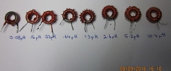 INDUCTORS FOR QRP VERSION, T50-2 CORES. (probably it would be better to wind the 0.08uH as an air wound coil.)
