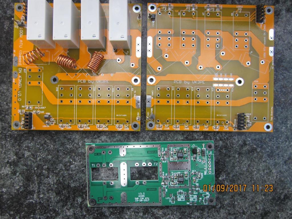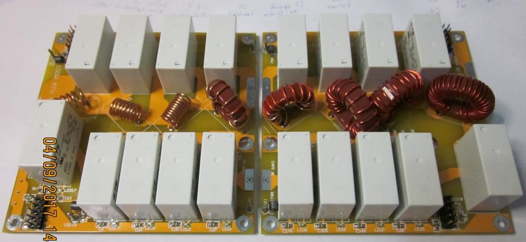 August 2017: I have had a re-think about the L&C PCB's for the 'QRO' (~100W) version. I decided to make two 100mm square PCB's to carry all the RF components. (unbalanced version only) They will be linked together with a couple of connection points and 2 ribbon cables (10Way) will then connect to the Control PCB. The Control PCB is identical to the QP version as detailed above.