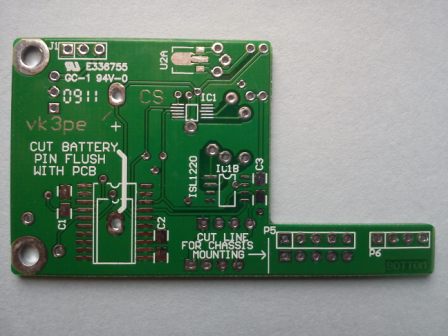 The homebrew PCB artwork has the copper as a cross-hatched area as I found this easier to home-brew using a laser printer. If you would prefer a solid copper type, please email me. vk3pe [qrz.com]