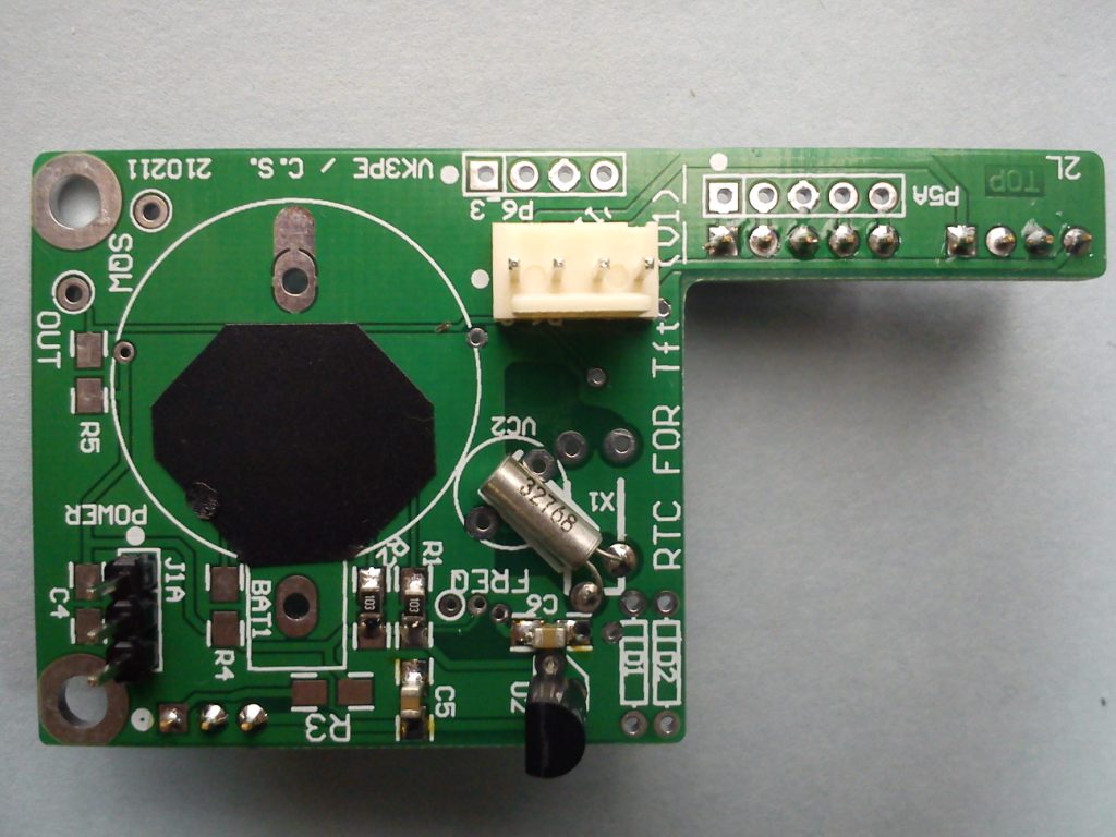 Above is the RTC-8563 version. In both versions I fitted 78L05 not the SMD part. Note: trim cap is used.