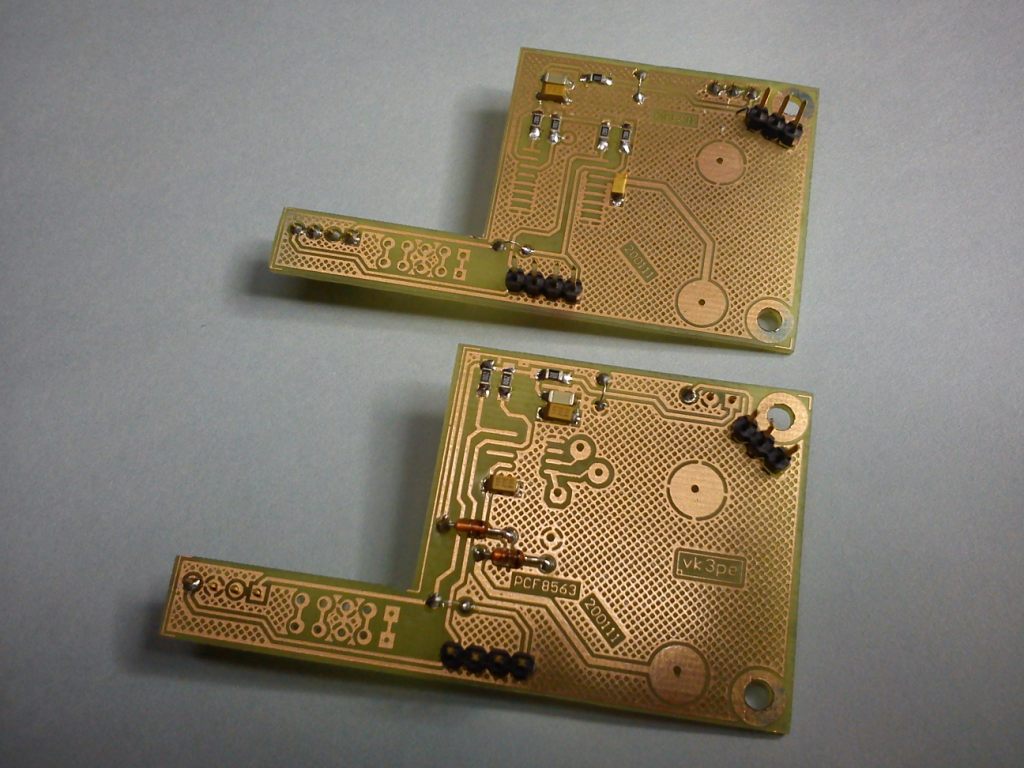 Typical single sided PCB's pictured below. (click for larger size) There is NO 5v regulator on this home brew PCB, it uses the 5v from the Tft PCB. (Ian's PCB's have in-built regulator) The Pro PCB does have 5v regulator, to allow chassis fitting.