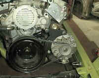 The alternator bracket was re-worked to bring in the alternator closer to the engine to allow it to fit inside the hood.