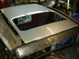 31st August 2000 I did a fair bit of the welding of the sunroof into the coupe roof. As you can see, I have added a strip each side to make the narrow sunroof fit the A model.