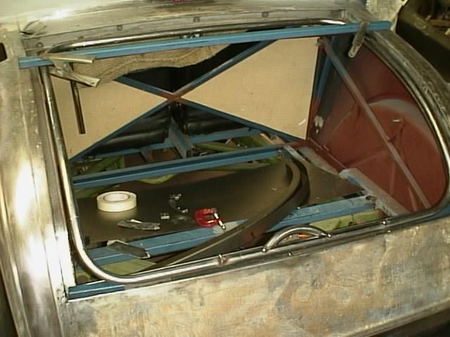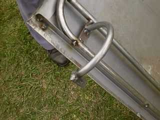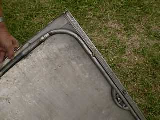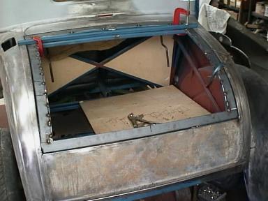 The inserted piece has been curved to match the front edge body opening. A similar piece was inserted at the rear edge also as in left hand picture. These pieces stiffen the edges considerably.