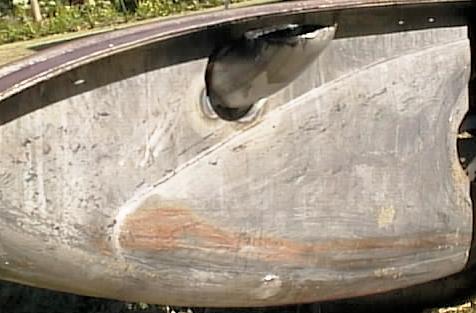 piece of flat sheet steel was welded at the bottom of the hole to give an approximately