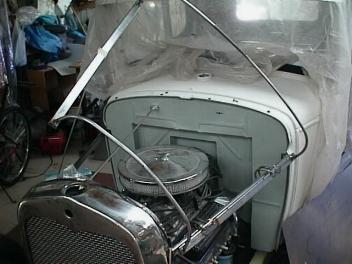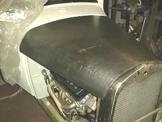 Jan 2003 The hood is now fitted to the frame. I used stainless pop rivets. Not my favorite fastening method, but actually looks OK.