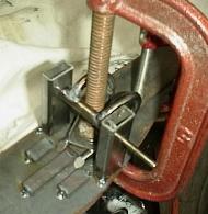 A few versions of hinges were tried, before settling on stainless steel. Stainless rod was used and bent over a 2" round form in a simple home-made jig. Stainless plate was used for mounting to the hood top and a 10mm piece of stainless rod was drilled for the hinge pin. The hinge needs to be designed to allow the hood top to lift up, without binding on the side panel.