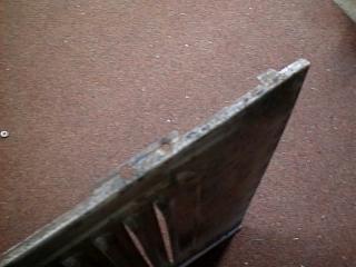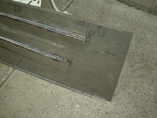 Inside view of panel with folds at top and bottom. The vents were made by hammer forming an edge in the panel, then folding up a "U" shaped piece for the inside of the vent. The front opening is about 3/4" wide. Careful trimming of both pieces was made on an angle, then they were welded together.