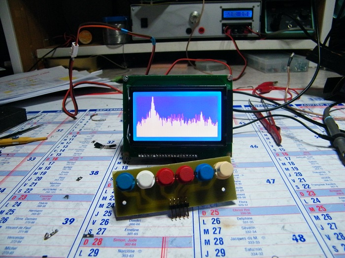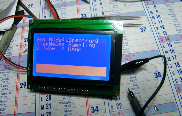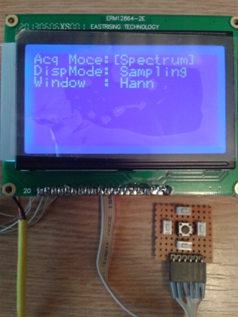 A 128x64 graphic display is used with an Atmel controller. Sweep rate seems very fast so updates are quick.