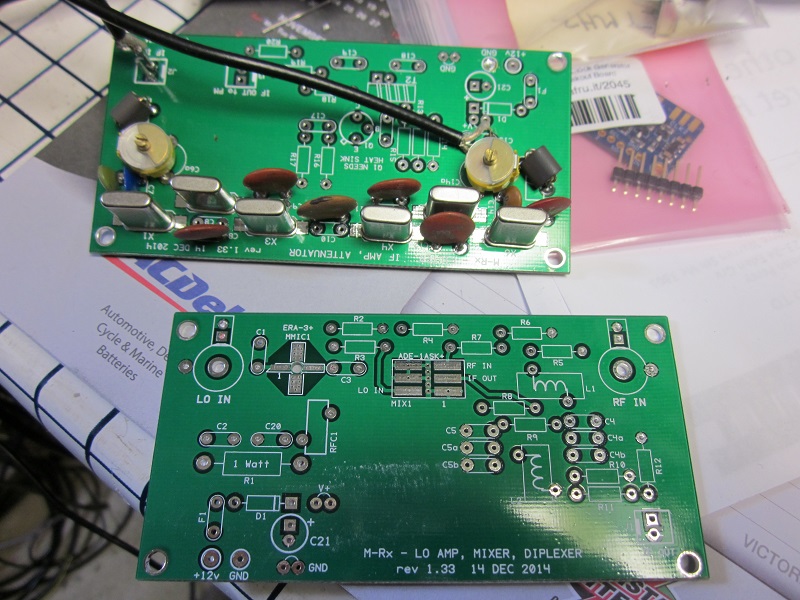 The local oscillator signal enters at the right hand side and the IF out at 455KHz is at the top. There is provision for an MMIC amplifier at 455KHz but it has not yet been fitted, since I don't have a suitable device in stock!