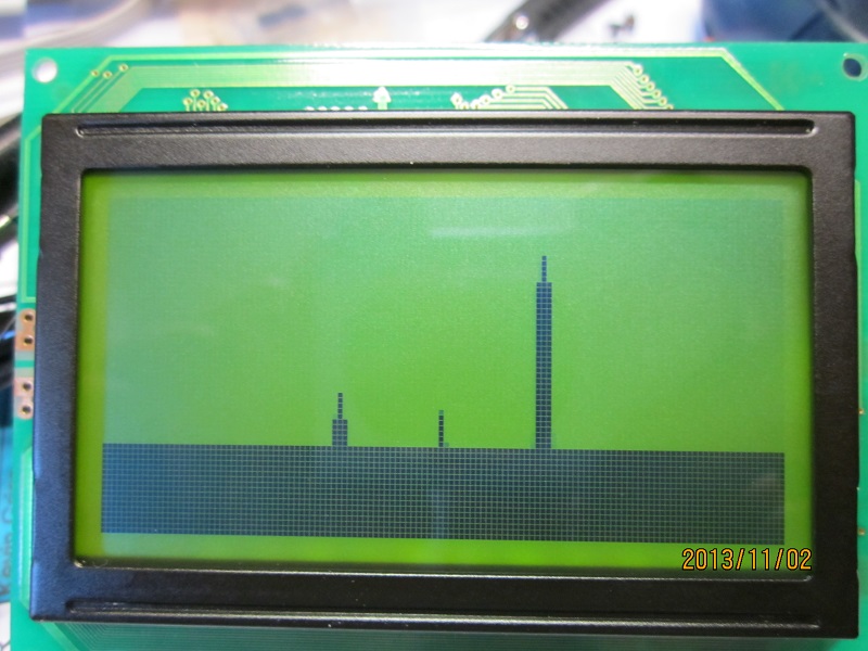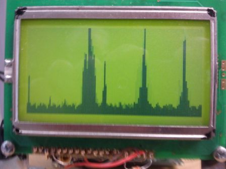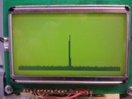 I may not use the vertical bar idea but use a single dot for each horizontal point, forming the more usual graphical display for a Panadapter. The exact scaling on the bottom is yet to be determined and is limited by the crystal filter used.