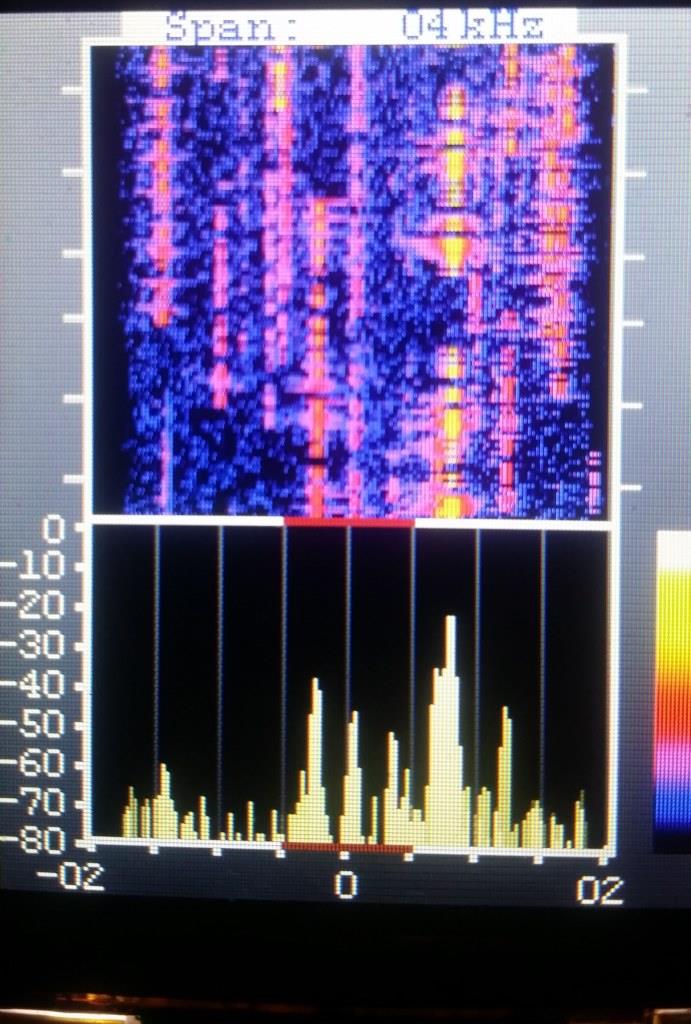 As you can see, the TFT Panadapter (left side) looks great in colour and also has the advantage of a 'waterfall' display. Fantastic!