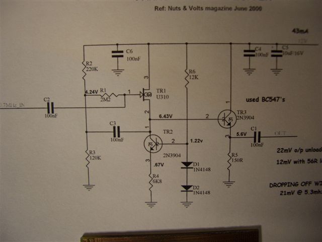 Refer to G4HUP's web page in link above for schematic and other details. He has a kit available also. This one does have some gain, so maybe more usefull in the DSP Panadapter version. VK3PE has made up his own PCB from G4HUP's schematic. Preliminary testing shows good gain. In fact maybe too much, will see how it performs in the DSP based Panadapter when fitted to my PICASTAR.