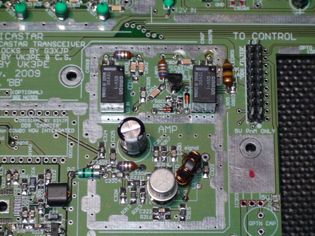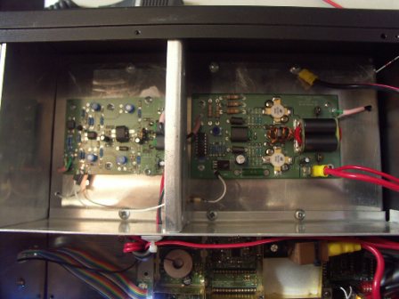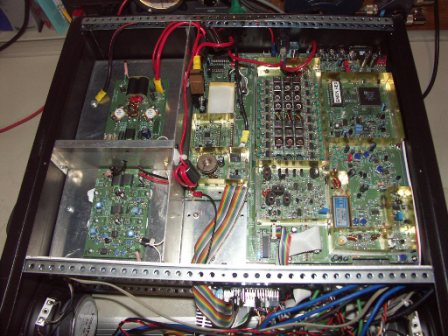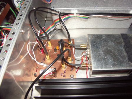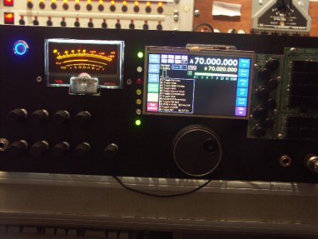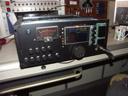 Hi Glenn, Finally I have taken some pictures of the nearly completed ComboStar! And one of the test gear stack with the Scope I was telling you about on the top. The final front panel has yet to be drilled etc. and will sit in front of the one in the pics. The rig is tranceiving very nicely and has an OZ2M 70MHz transverter built in. I have yet to build a PA for 4m but have a design waiting for some time to do it. The LPF is mounted in a box purchased from Farnell and is a good fit! The LEDs next to the tft are from top to bottom; Parameter colour, Spare, TX, Attenuator, IP3, DSP, and 5v AVR. I just thought that the provision was there so I might as well use it! I have not decided what to assign the 8 buttons to the right of the display yet but I'm sure I will find a use for them. Hope the files are not too large. All the best and hope to work you Star to Star sometime. 73 Seamus G7ITT