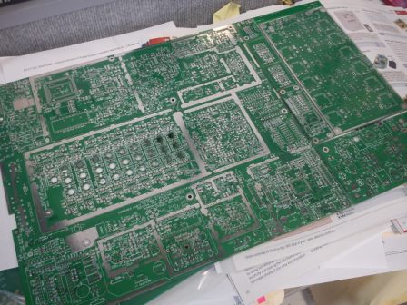 The panel of PCB's is 410 x 260mm. Another PCB for the 140W PA is not shown. < click for larger size pictures. >
