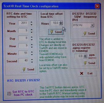 The RTC type and time setting is done using the 'HOBCAT.EXE' program by G3VPX. I used the DS3232 chip. The RTC chip type is set in the 'hardware' menu. Three chip types are catered for. The PCF8563 is NOT catered for.