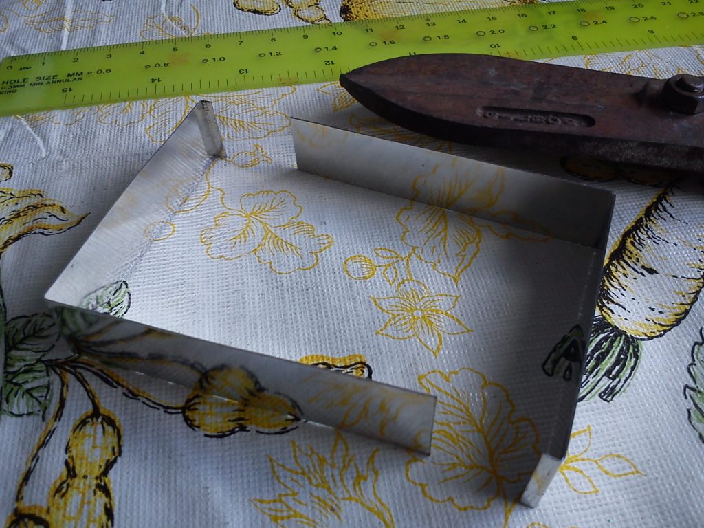 The PCB has provision for extensive shielding. In my case I used tin-plate (from RS-Components) but other materials like brass can be used also. I carefully cut long strips then formed them to make the walls for each area. Below is a strip method I used for joining and forming a box section. It is important to make the bends at right angles ! Use a carpenters square to make the bend lines.
