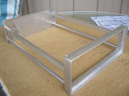 I made a case from standard aluminium extrusions, screwed together. The length is a little long here as the thinking is to eventually reduce it to suit the final layout. Its easy to do, by shortening the side rails and re-tapping them. The side rails are held together with 4mm machine screws, mostly countersunk head type.