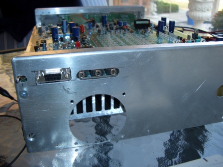 There is about 60mm underneath, for inclusion of the PA's and LPF boards, with a 60mm fan. The LPF will have a shield fitted to it. The PA's etc fit onto a sub chassis, with a 60mm folded section at the front of the case. Still to be fitted are a fuse holder and DC power input connector.