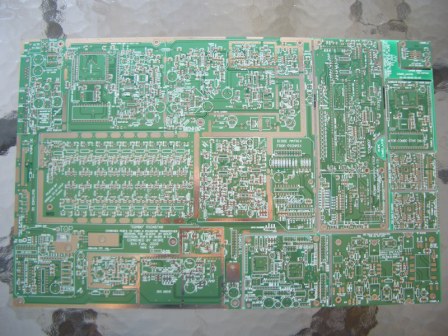 22nd Feb, 2009: Quite a bit of work done to build the PCB. After about 15 hours, this is where I am at. Waiting for some more parts right now, but most completed blocks on the PCB are working. PicnMix shows "3.727" on power up, keypad, Butler Osc, 2nd LO, AF amp. works etc.