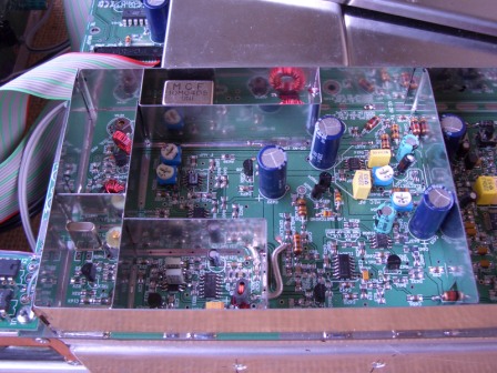 A feature of the PCB is the ease of assembly. Most wiring between the various sections is on the PCB itself. There are a few coax cables under the PCB for interconnecting RF sections. Wiring to the Picnmix (front panel) is via two 20 pin IDC cables, quickly and easily made.
