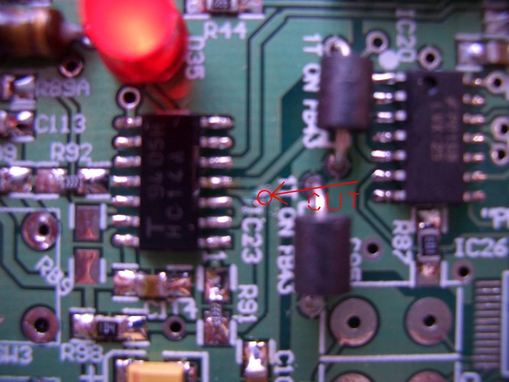 DSP area of IC23 cut the track UNDER the IC23 designator on the PCB. Photo here.
