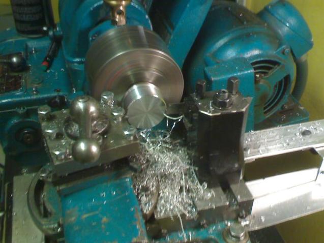 "DSC00078.JPG" Tuning knob in the making, from solid aluminium. Life is easier when you have a friend with a lathe! I operated the lathe myself though.