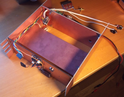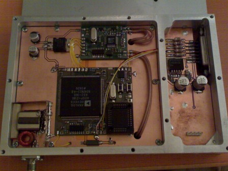 A housing was made of PCB pieces. DDS assembly can be seen, and the three slots