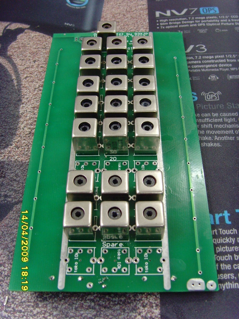 Right now, the DSP boards are ok, Pic'n mix and DDS are also ok, the IF and MR are almost completed (except for two toroids and 10,715M crystal). Could not find TOKO coils for the BPF, got the Coilcraft ones, but found unusual high insertion loss for the 40m (9,5 dB), 60m (7 dB) and -of course- 30m (18 dB). The low bands IL is acceptable (3,5 dB for 80m and 4,5 dB for 160m). The IL for the higher bands is good (about 2 dB). Tried different capacitor values for the 40m band, tried both yours and G6ALU cap values for different band coverage, but no much improvement regarding the IL. Will see further about, maybe will try some ferrite toroids for this band.