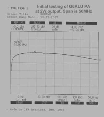 At 1.8MHz power output is ~7dB down. At 50MHz -8.5dB. The higher end may lift with a change to the emitter cap on the MPSH10, but this has not been measured yet.
