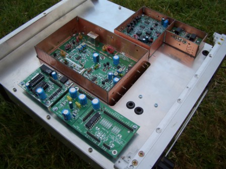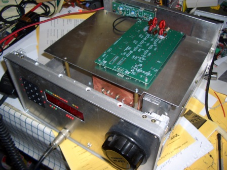 The BPF will be located at the far end and will be mounted under this panel. Eventually, a 150W G6ALU PA will be fitted along the back panel, with the G6ALU 20W PA and the whole PA area will also be shielded.