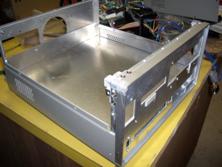 This is a commercial case and looks quite nice in original form as it uses some nice castings for the front panel perimeter. I stripped everything out of this case except the chassis, but decided it would be too hard to rework, being 2mm steel. So I pulled that out also and bent up a simple "U" shaped piece of 1.6mm aluminium sheet.In the end, the only thing left of the instrument, was the front panel surround and the top and bottom covers ! I happened to have some thin sheet fasteners bought at a rally so used them in the chassis.