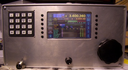TftA PCB was developed by Chris S. specifically for using a TFT colour display (480x272pixels). Software is by Gerard, VK3CG or VK3GRS. The PCB is available from Gerard. Contact him directly. Email is at www.qrz.com Cost at time of writing, is a very reasonable AUS$5.00 plus shipping (TBA) TFT displays can most commonly be found in 4.3" (diagonal) and 5". The 4.3" for example, is commonly sold on eBay as a replacement screen for Sony PSP 1000. It has no touch screen. Typical cost is about US$20-25. The 5" types are harder to find, but can be obtained in touchscreen or non-touchscreen versions. Picture below is without touchscreen (TS). A home made pcb carries switches to emulate TS. 2013: both 5" and 4.3" types with TS can now be found on ebay for around $20-30. Make sure you get a compatible type though ! Refer to the list on the Yahoo TFT_central group for details.