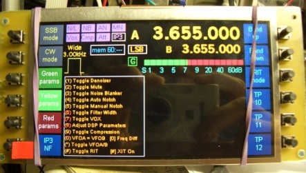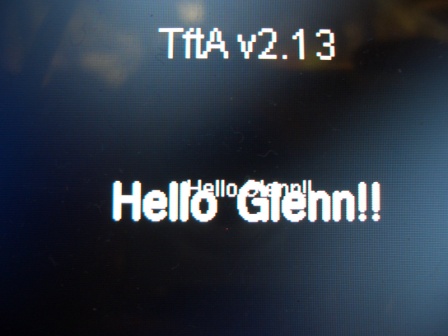 Now, on power cycle, your TftA PCB v2.2 should briefly flash up "tft v2.xx" (or later) then a nice full screen of colour should appear ! You may notice that some text appears to be the wrong size. Eg the A and B VFO frequencies will be quite small. Using Hobcat again, the fonts need to be