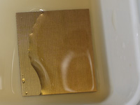 Bild 7: Die restliche Fotoschicht, die immer noch die Leiterbahnen bedeckt kann problemlos mit Brennsprit entfernt werden.