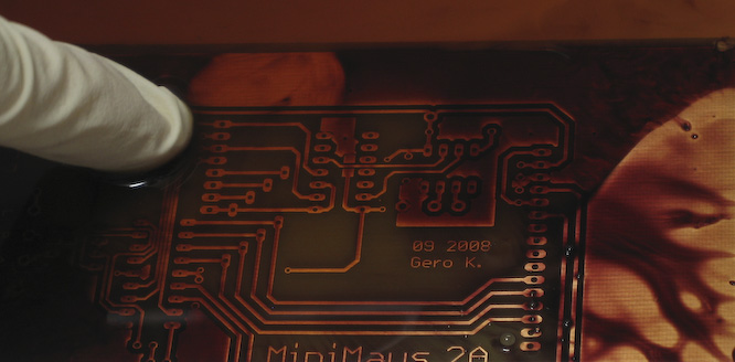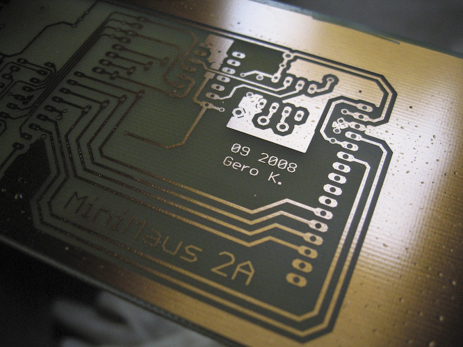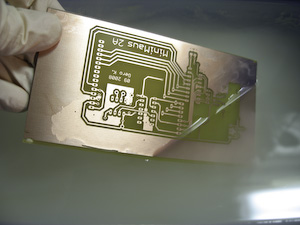 Bild 6: Die Leiterbahnen sind entstandent, und die Platte wird sichtbar.