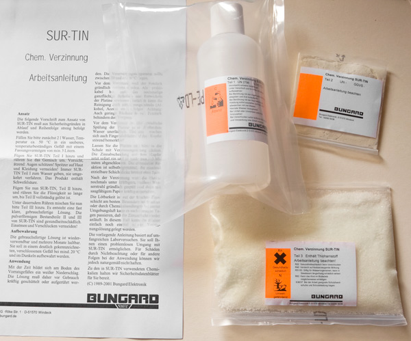 aufzubringen, ist Sur-Tin. Es besteht aus 3 Komponenten (Schwefelsäure,